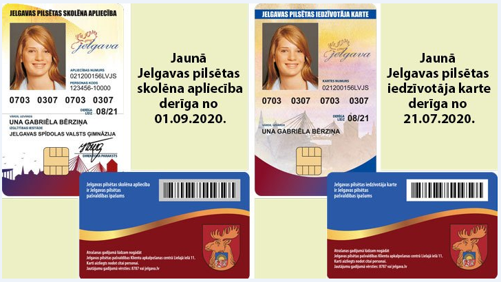 No 1. jūlija Jelgavas iedzīvotāji un skolēni pakāpeniski var pieteikties jaunās Jelgavas iedzīvotāja kartes un Jelgavas skolēna apliecības saņemšanai, kas turpmāk ļaus saņemt pašvaldības atvieglojumus pilsētas sabiedriskajā transportā un ēdināšanai skolās. Jelgavas pašvaldība ir izstrādājusi jauna parauga personalizētas Jelgavas iedzīvotāja kartes, kuras sāks izsniegt no 21. jūlija, izsniegtās iedzīvotāja kartes sāks darboties no 1.augusta. Jaunas Jelgavas skolēna apliecības sāks darboties līdz ar jauno mācību gadu.